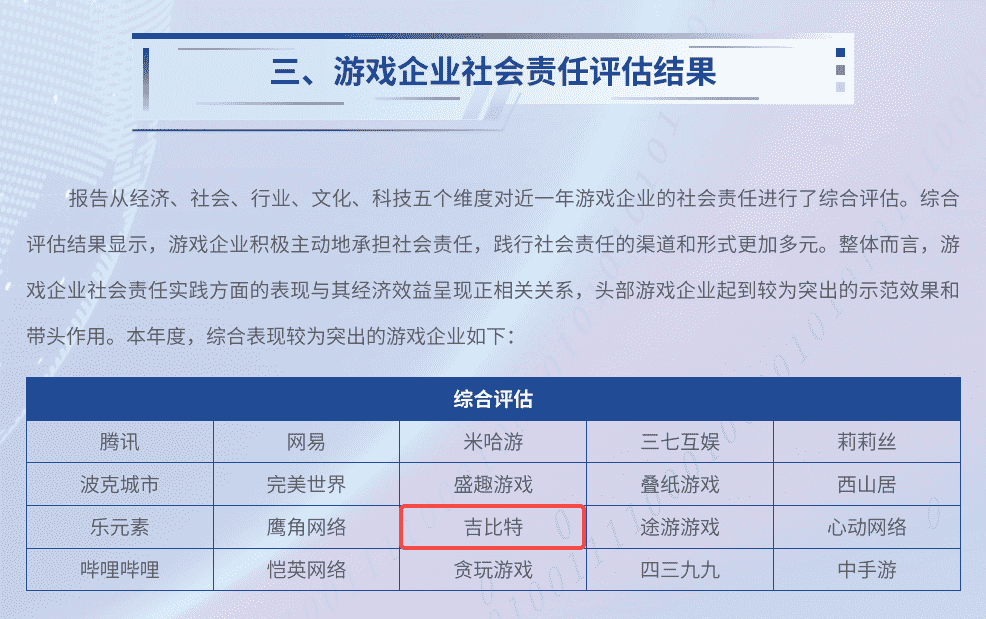 7月3日,,,,由中国音像与数字出版协会指导,,北京市西城区人民政府主办的“2024游戏责任论坛”在北京举行。。。论坛上,,人民网舆情数据中心、、、人民灵境研究院、、、、灵境 · 游戏实验室联合发布了《2023-2024游戏企业社会责任报告》(以下简称“《报告》”),,,公布了游戏企业社会责任评估结果。。厦门赏金大对决网络技术股份有限公司(以下简称“赏金大对决”或“公司”)获评“2023-2024年度中国游戏企业社会责任综合表现较为突出企业”。。。这是继2020年以来,,赏金大对决第五次入围人民网中国游戏企业社会责任相关荣誉榜单。。