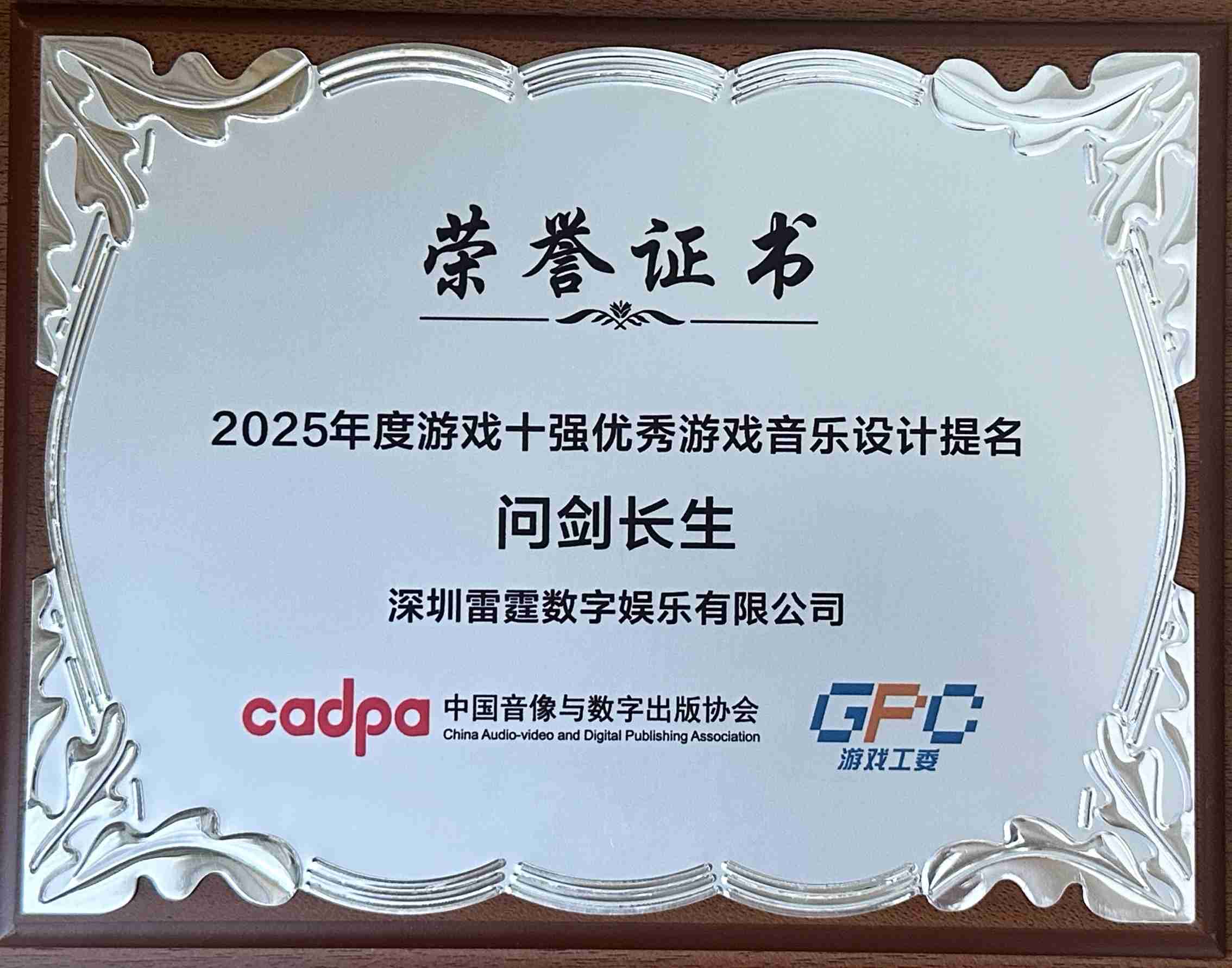 公司坚持走精品化道路,,,,打造与时代精神相契合、、、、与海内外大众诉求相契合、、、与创作实践相契合的游戏产品,,,倡导构建具有中华文化特色、、、、弘扬中华美学精神的产品理念,,,,切实提升游戏文化内涵的传播力影响力。。。如此次荣获“2025游戏十强年度优秀游戏音乐设计”提名奖的公司自研产品《问剑长生》以音筑境,,以乐传情,,,,其音乐融合东方传统韵味与现代审美,,,构建独特听觉世界,,,运用古筝、、、、笛子、、、、箜篌等传统乐器与现代管弦乐,,塑造灵动古风仙侠氛围。。。