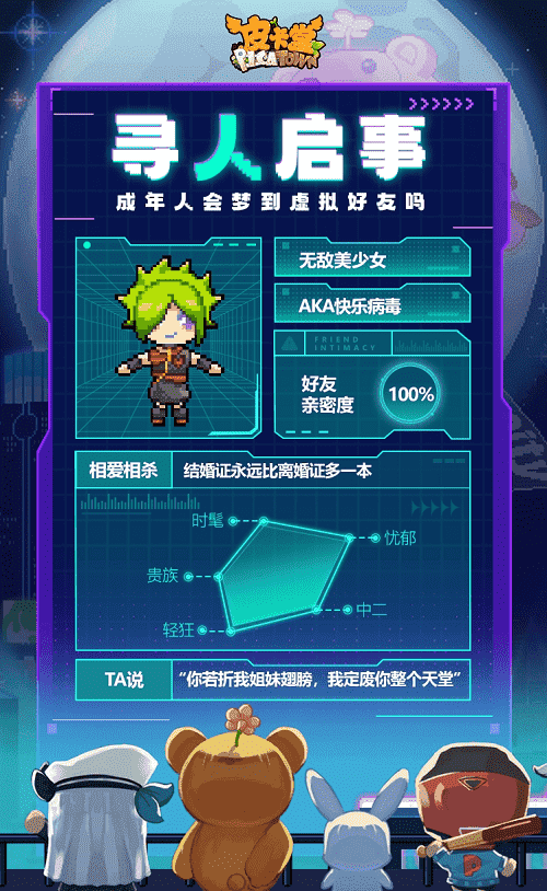 除此之外,,,,更丰富的全新玩法也会在这里与大家见面,,,,希望给大家带来不一样的游玩体验。。。。升级后的皮卡小镇,,,,大家可以和闺蜜一起逛购物街,,邀请三两好友来到自己开的小店,,还可以在小屋体验海岛或城堡生活……总之,,希望大家能在游戏中找回最快乐的自己,,享受最纯粹的社交魅力。。。。