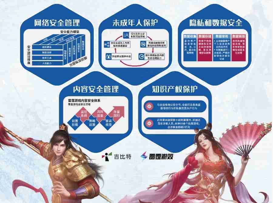 本次赏金大对决展区以网络安全管理、、、、内容安全管理、、、、未成年人保护、、、、隐私和数据安全、、知识产权保护五个模块介绍公司游戏安全工作成果,,,,体现赏金大对决高度重视网络安全,,严格遵守相关法律法规要求,,,,积极承担企业主体责任。。